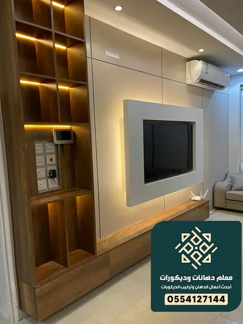 ديكور شاشة بديل الخشب للتلفزيون في تبوك